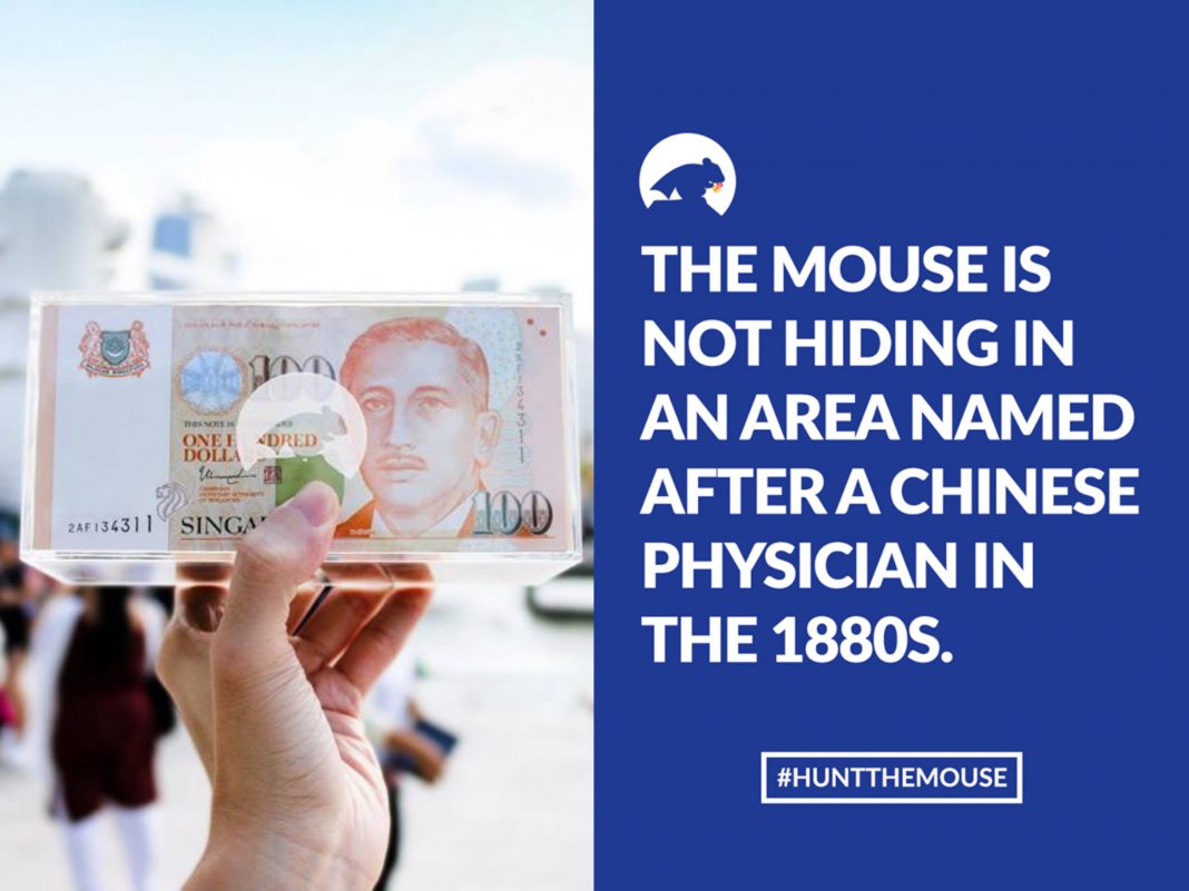Three daily hints released on Facebook from 4 September about the secret location of the gold coin, dubbed as “mouse”. The contest “#HuntTheMouse” sponsored by OCBC, with extra hints in the form of scratch cards at Liho, Pastamania and Obike. The contest will end when the coin is found.