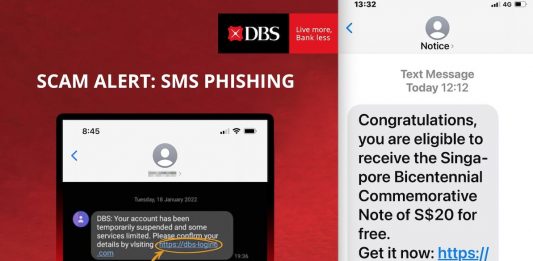 Singapore — A concerned individual appealed for assistance online after her mum fell victim to a “DBS Bicentennial Commemorative Note” phishing scam, resulting in her life savings “gone within seconds.” Complaint Singapore Facebook page member Nayer Soh asked for advice from others on Sunday (Jan 23) as they were allegedly left in the dark regarding … Continue reading ICYMI: Another family loses life savings, this time to DBS’ S’pore Bicentennial Commemorative S$20 note phishing scam