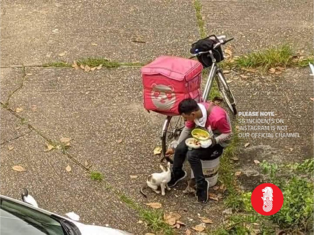 A heart-warming photo of a random act of kindness was shared on the Facebook group Singapore Incidents on Wednesday (July 7). The photo captured a Foodpanda delivery rider taking a break on the roadside, with his bike parked next to him and an open food container on his lap.