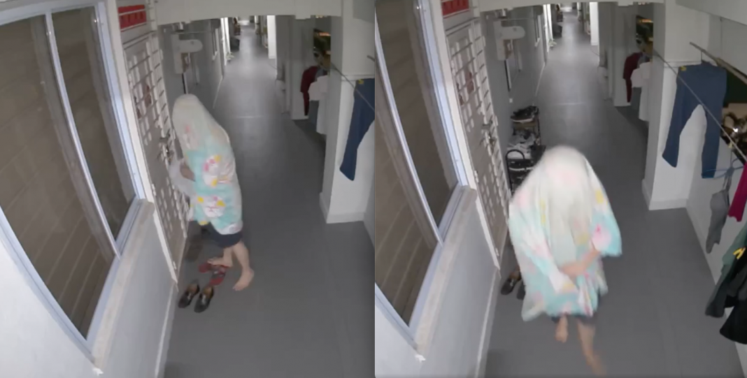 Singapore — A “hantu neighbour” was recently spotted harassing a Housing & Development Board (HDB) resident by shaking their door grill and walking away.