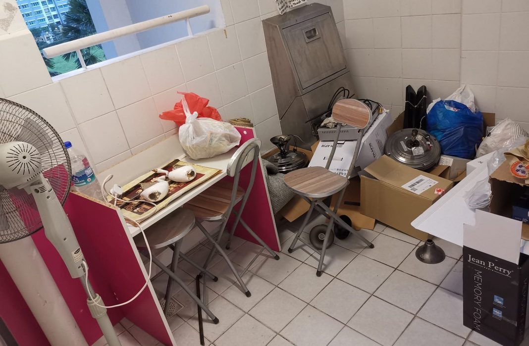 The concerned resident shared a photo of their common corridor near the rubbish chute. It appears multiple items needing disposal have piled up in the area, resulting in what Mr Li called a “new study corner.”
