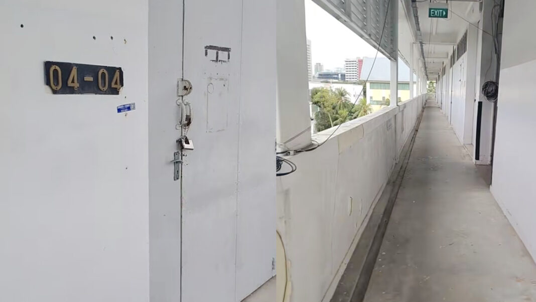 Mr Alfian then panned his camera around, showing a door that was padlocked. He placed the food from Din Tai Fung on the ledge of the corridor in front of the door.