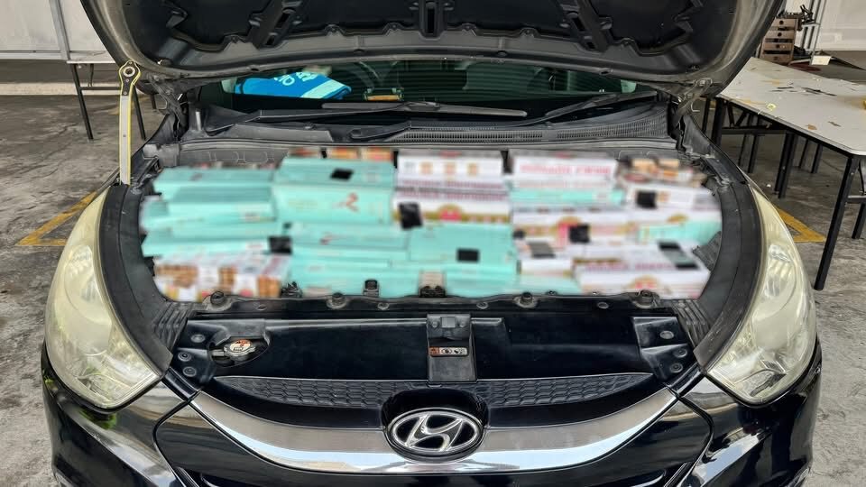 According to ICA, the vehicle was flagged for further checks after officers received information from the Integrated Targeting Centre (ITC). When the car was inspected, officers uncovered multiple modified compartments packed with contraband cigarettes, carefully concealed in an attempt to avoid detection.