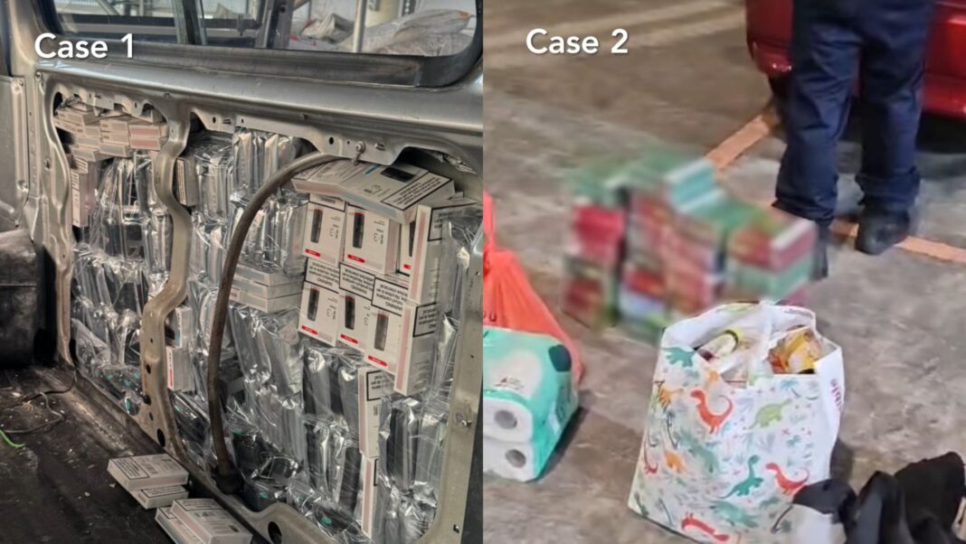 Inside the van, e-vaporisers were found concealed in boxes buried among electrical appliances and messy bundles of wires. Officers continued searching and uncovered an even larger stash hidden inside the vehicle’s door panels, bringing the total haul from this case to more than 1,600 e-vaporisers.