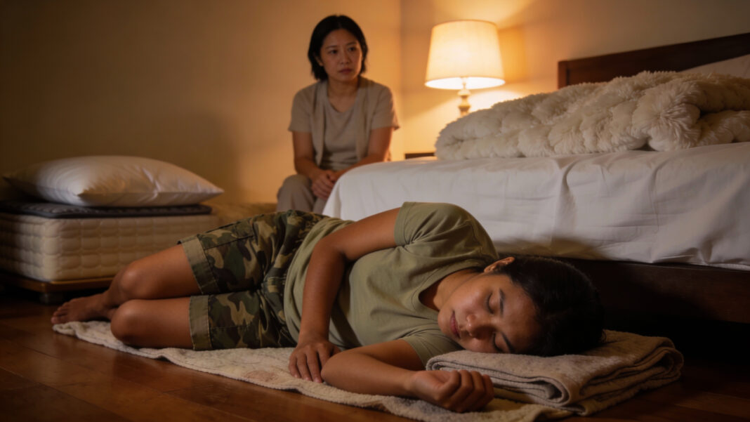 Practical suggestions ranged from bamboo mats and Japanese-style futons to yoga mats, foldable firm mattresses, or simply thicker blankets to guard against cold floors at night. “The floor’s actually really comfortable. The only thing is that it gets cold at night, so maybe give her some thick blankets,” one person said.