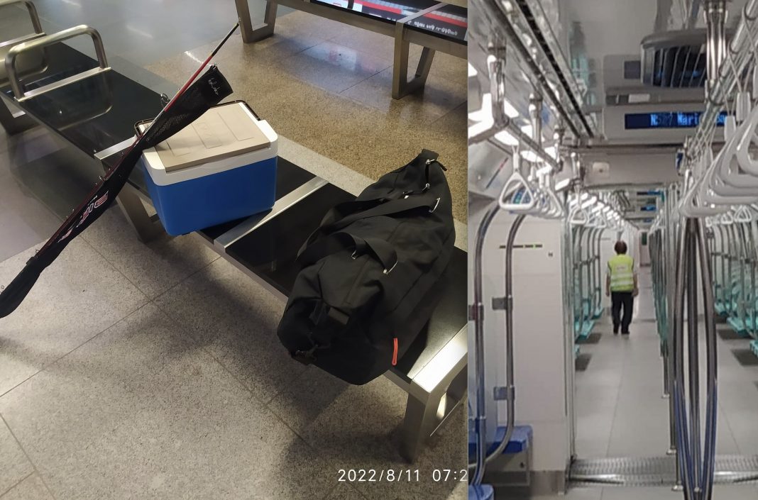 An MRT passenger who placed his belongings neatly stacked by the train doors was surprised to be told off by the MRT staff, informing him to keep his items with him.