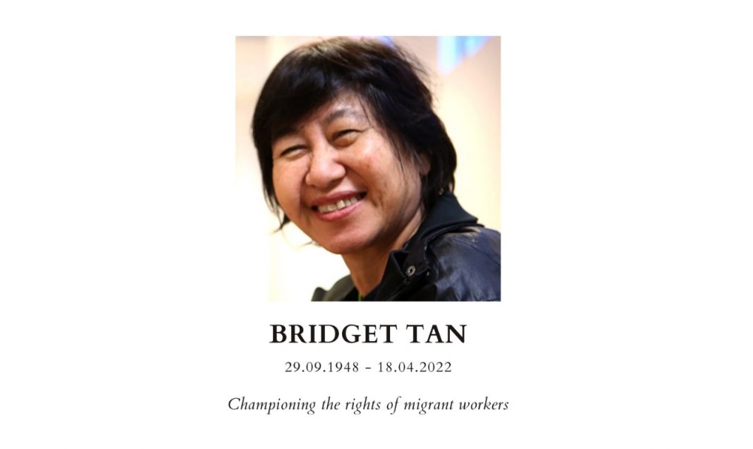 Humanitarian Organisation for Migration Economics (HOME) founder Ms Bridget Tan, 73, has passed away on Monday (April 18).