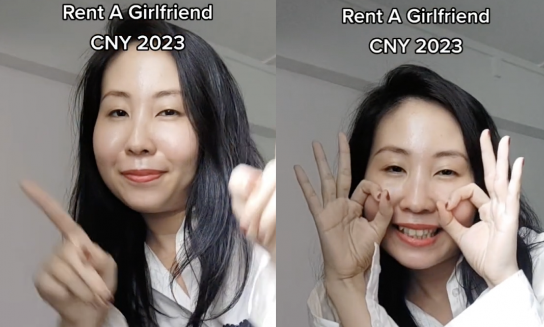 “Rent a girlfriend CNY 2023,” posted a Ms Melissa Wang, who goes by @flynhellaswag on TikTok, on Wednesday (Jan 18).