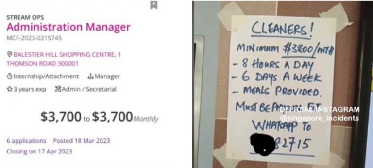 SINGAPORE: An old video of a cleaner job offer posted for S$3800 a month has resurfaced and been shared online. The job was for eight hours a day and six days a week. An online page that keeps track of incidents that take place all over Singapore shared an old Tiktok video featuring a job … Continue reading ‘Salary higher than fresh U grad, who wants?’ — Cleaner job offer for S$3800/month