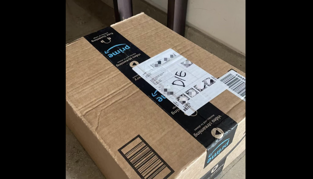 Ms Yang posted a photo of a box from Amazon, and on the address label, the word what appeared to be DIE written in black with big, bold letters can be seen even from a distance.