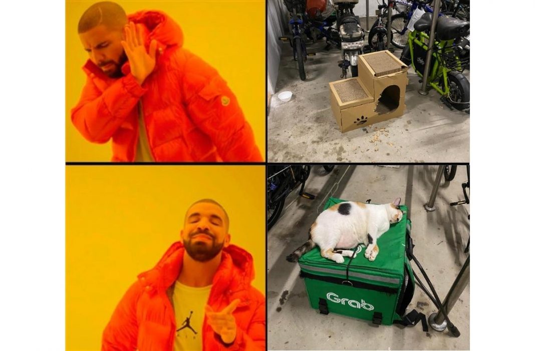 Another common cat quirk is choosing any other thing to sleep in except for their designated cat beds, which often cost a fortune. Such was the case for a community cat in Woodlands who said no to a couple of available cat beds and chose a food delivery bag instead.
