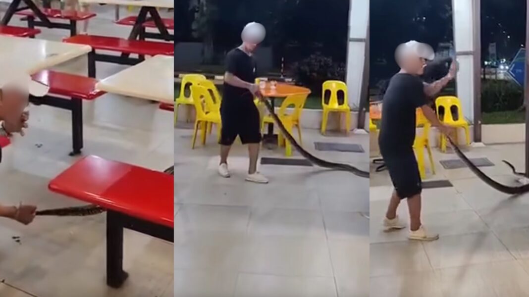 SINGAPORE: Residents near Blk 211 Marsiling Crescent had a surprising visitor recently when a snake was spotted slithering near a coffeeshop. The sighting caused a brief stir among those who were present, but it was thanks to the quick action of a member of the public, who was an uncle who didn’t hesitate to step in, that the situation was safely and quickly resolved.